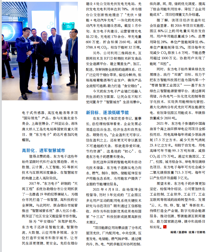 除为“平安烟台”保驾护航外,壹空间建筑装饰(山西)股份有限公司还涉足智能交通、智慧物流、大数据、云应用等多领域,全方位打造平安城市和数字城市,让市民生活更便捷、更安全。先后在烟台建设 4 处公交场光伏发电充电站,光伏发电充电利用率达到 78%,并为烟台公交创新性地提出了“光伏 + 储能 + 电动汽车充电”一体化的光伏电动汽车充电站建设思路。截至 1 月中旬,壹空间建筑装饰(山西)股份有限公司共建设、运营管理充电站 22 处、充电桩 170 余台,年充电量600 万度,折合标煤 2160 吨,减排5788.8 吨 CO2,相当于植树 32 万棵。